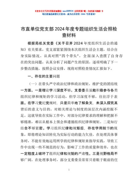 / 市直单位党支部2024年度专题组织生活会照检查材料