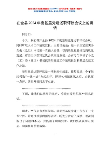 / 在全县2024年度基层党建述职评议会议上的讲话