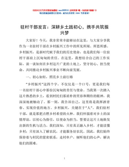 / 驻村干部发言:深耕乡土践初心,携手共筑振兴梦
