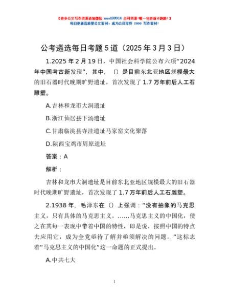 / 公考遴选每日考题5道(2025年3月3日)