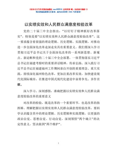 以实绩实效和人民群众满意度检验改革