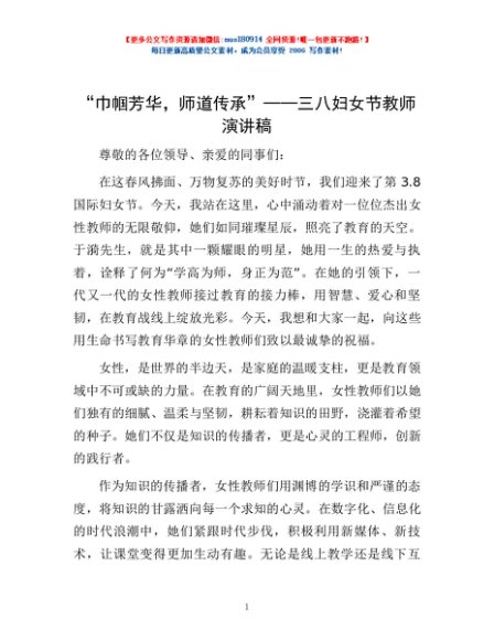 / “巾帼芳华,师道传承”——三八妇女节教师演讲稿