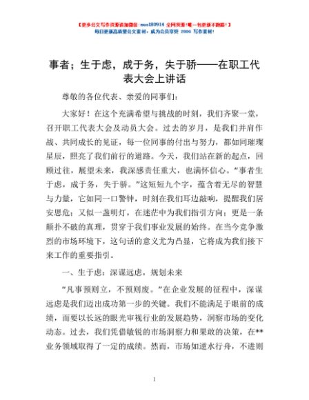 事者;生于虑,成于务,失于骄——在职工代表大会上讲话