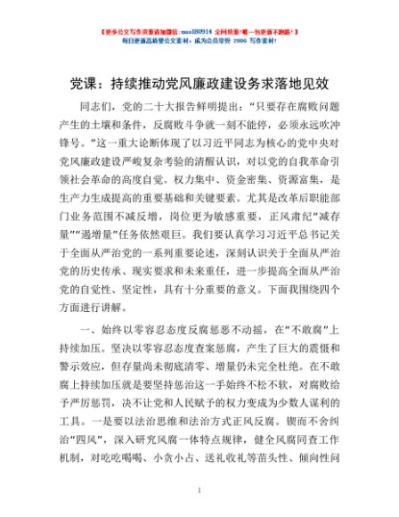 / 党课:持续推动党风廉政建设 务求落地见效