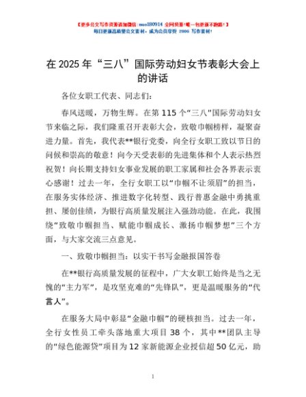/ 在2025年“三八”国际劳动妇女节表彰大会上的讲话