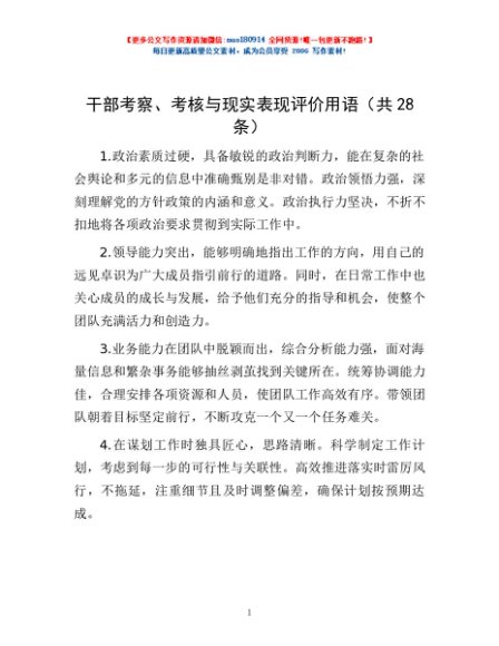 干部考察、考核与现实表现评价用语(共28条)