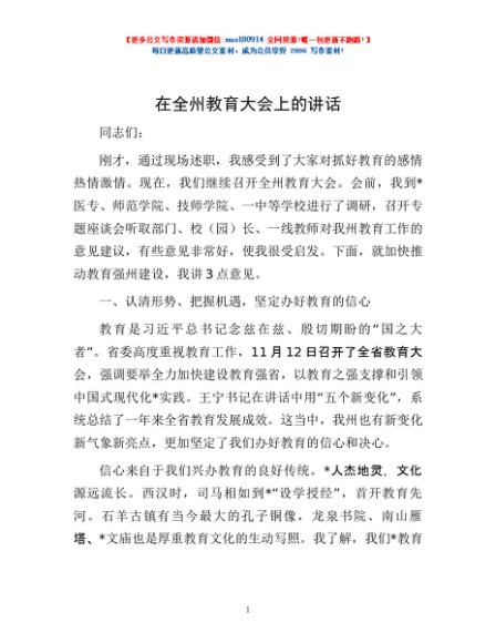 / 在全州教育大会上的讲话
