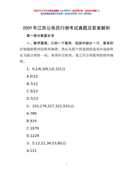 2009年江西公务员行测考试真题及答案解析