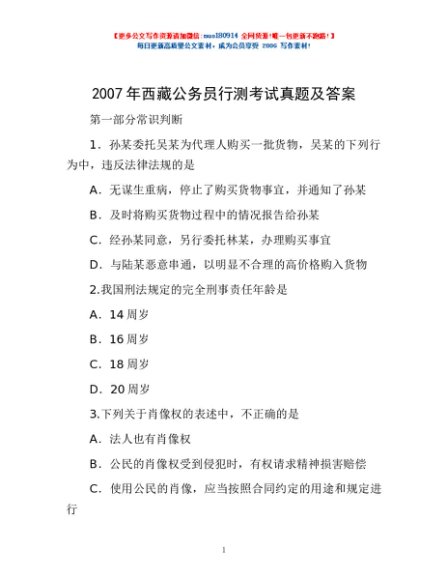 2007年西藏公务员行测考试真题及答案