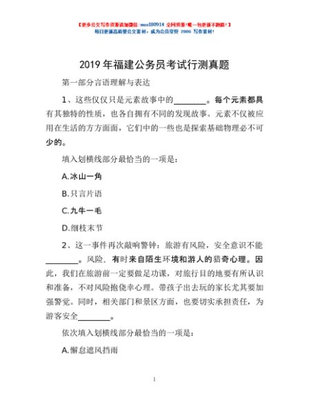 / 2019年福建公务员考试行测真题