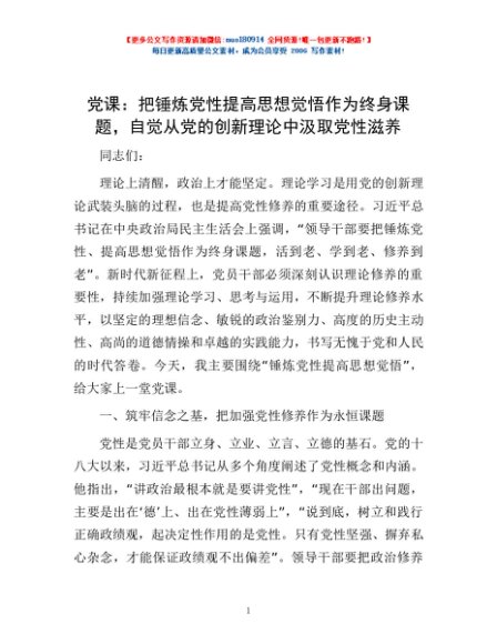 / 党课:把锤炼党性提高思想觉悟作为终身课题,自觉从党的创新理论中汲取党性滋养