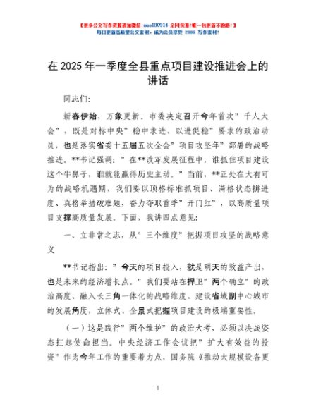 / 在2025年一季度全县重点项目建设推进会上的讲话