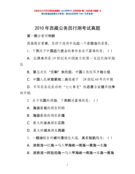 / 2010年西藏公务员行测考试真题