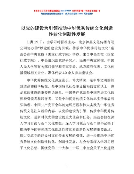 / 以党的建设为引领推动中华优秀传统文化创造性转化创新性发展