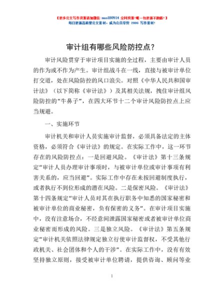 / 审计组有哪些风险防控点?