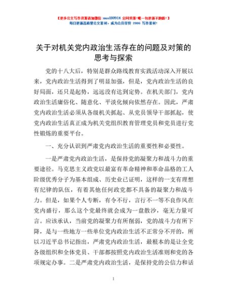 关于对机关党内政治生活存在的问题及对策的思考与探索