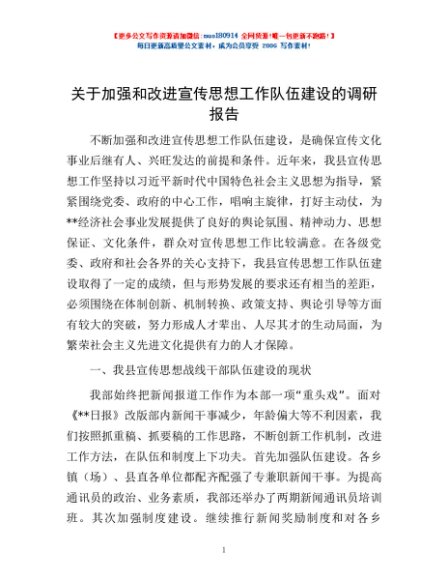 / 关于加强和改进宣传思想工作队伍建设的调研报告