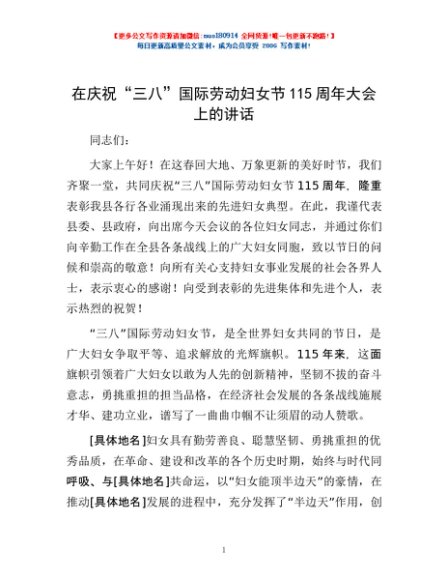 在庆祝“三八”国际劳动妇女节115周年大会上的讲话