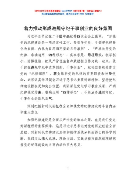 / 着力推动形成遵规守纪干事创业的良好氛围