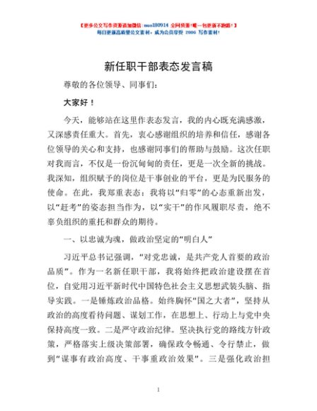 新任职干部表态发言稿