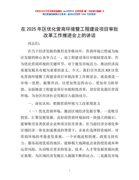 / 在2025年区优化营商环境暨工程建设项目审批改革工作推进会上的讲话