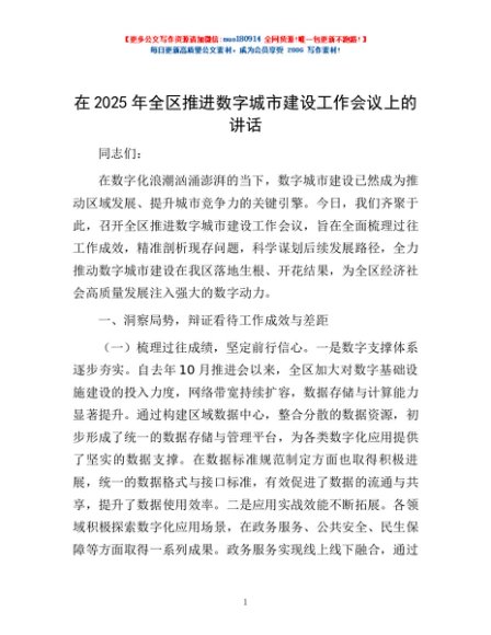 / 在2025年全区推进数字城市建设工作会议上的讲话