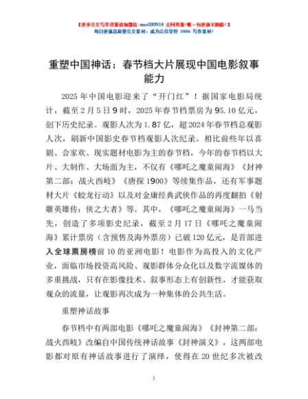 / 重塑中国神话:春节档大片展现中国电影叙事能力