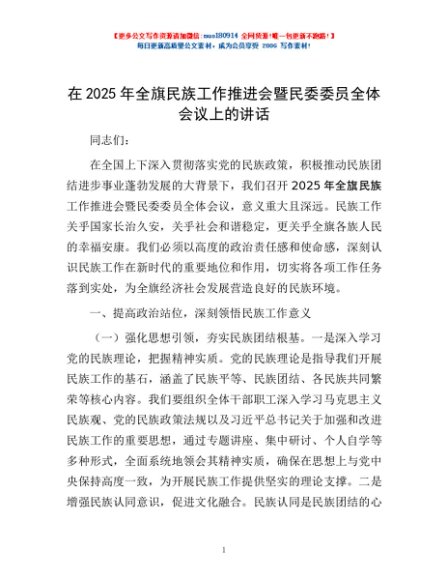 / 在2025年全旗民族工作推进会暨民委委员全体会议上的讲话
