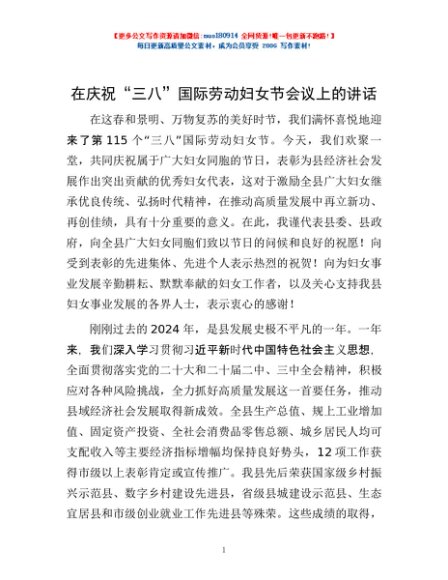 / 在庆祝“三八”国际劳动妇女节会议上的讲话