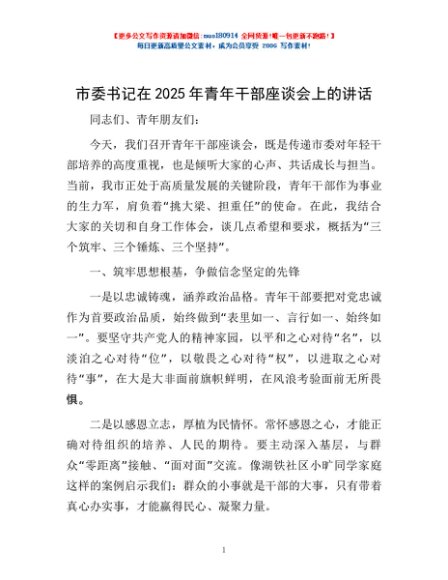 / 市委书记在2025年青年干部座谈会上的讲话