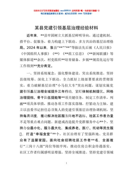 / 某县党建引领基层治理经验材料