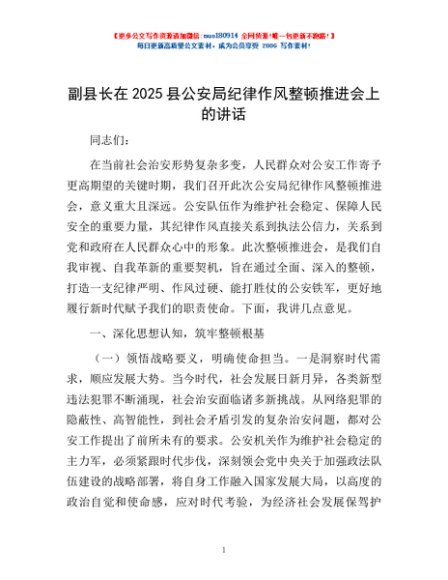 / 副县长在2025县公安局纪律作风整顿推进会上的讲话
