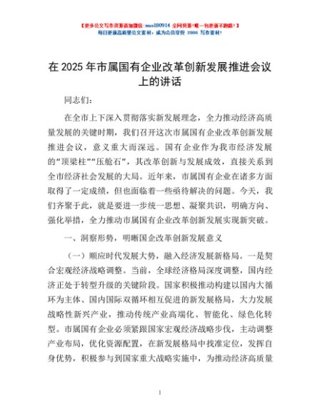 / 在2025年市属国有企业改革创新发展推进会议上的讲话