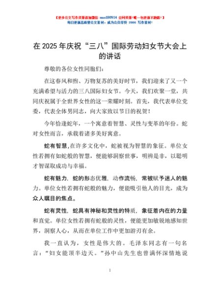 在2025年庆祝“三八”国际劳动妇女节大会上的讲话