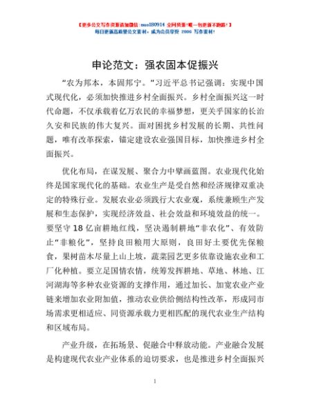/ 申论范文:强农固本促振兴