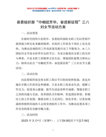 / 县委组织部“巾帼绽芳华,奋进新征程”三八妇女节活动方案
