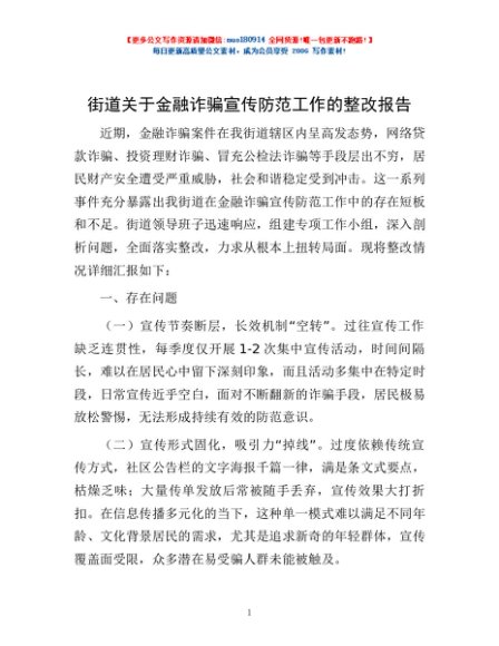 / 街道关于金融诈骗宣传防范工作的整改报告