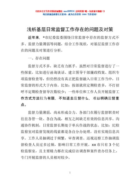 / 浅析基层日常监督工作存在的问题及对策
