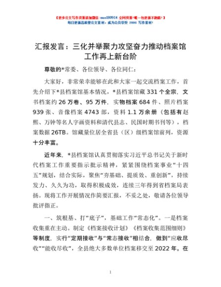 汇报发言:三化并举聚力攻坚 奋力推动档案馆工作再上新台阶