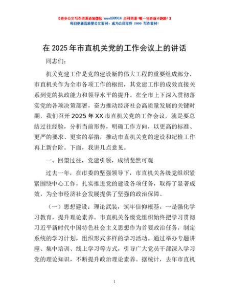 / 在2025年市直机关党的工作会议上的讲话