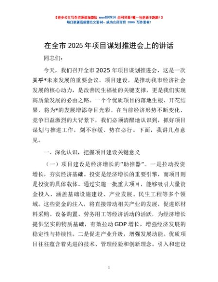 / 在全市2025年项目谋划推进会上的讲话