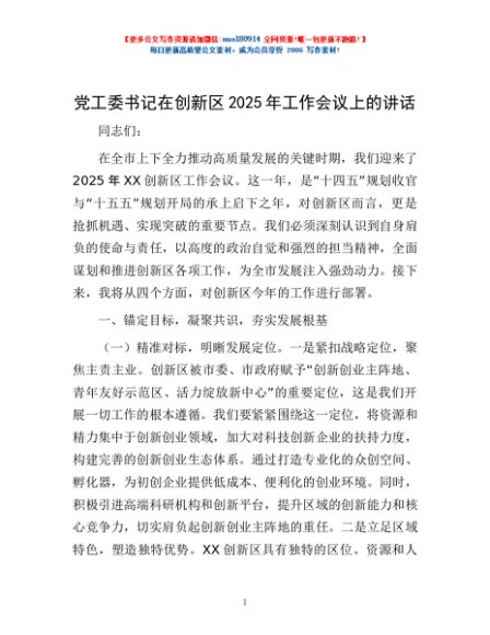 / 党工委书记在创新区2025年工作会议上的讲话