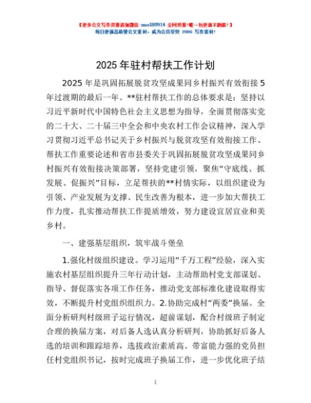 / 2025年驻村帮扶工作计划
