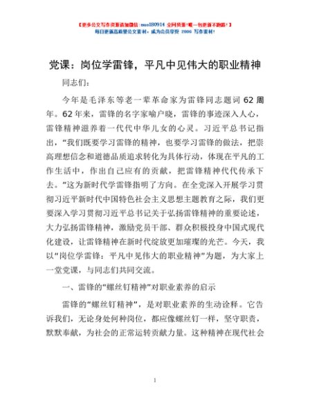 党课:岗位学雷锋,平凡中见伟大的职业精神