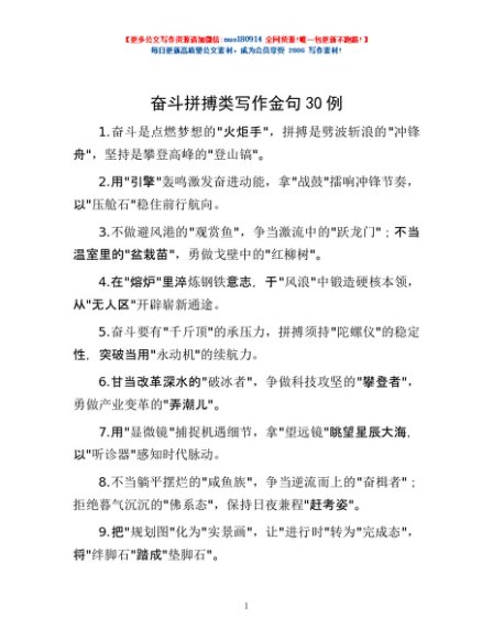 / 奋斗拼搏类写作金句30例