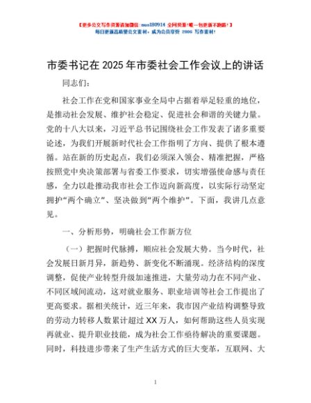 / 市委书记在2025年市委社会工作会议上的讲话