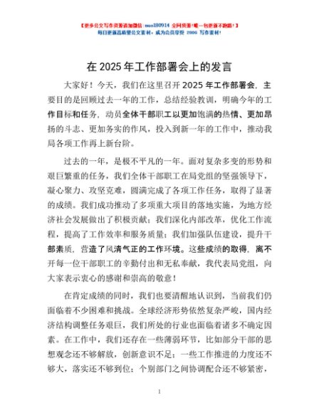 / 在2025年工作部署会上的发言