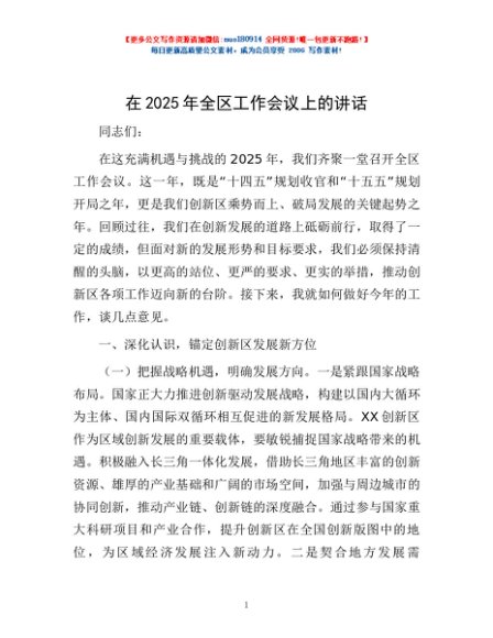 / 在2025年全区工作会议上的讲话