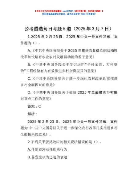 / 公考遴选每日考题5道(2025年3月7日)