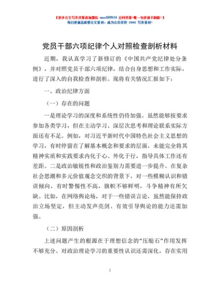 / 党员干部六项纪律个人对照检查剖析材料